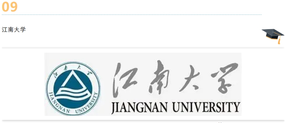 江南大学是教育部直属的 “211 工程” 和 “双一流” 高校。源起 1902 年的三江师范学堂,历史底蕴深厚。其轻工、食品、纺织、设计等特色学科优势突出,食品科学与工程学科连续六年在软科世界一流学科排名中位列世界第一。师资雄厚,拥有多位院士及国家级人才。注重产学研融合,诸多科技成果实现转化 。