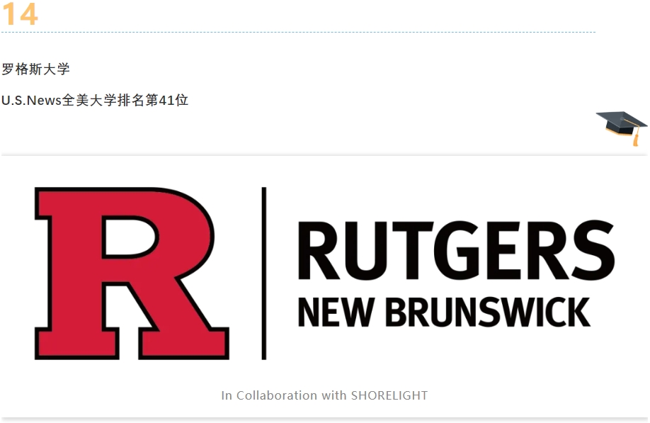 罗格斯大学(Rutgers University)成立于1766年,是美国历史最悠久的公立研究型大学之一,主校区位于新泽西州新布朗斯维克,另有两个分校(纽瓦克、卡姆登)。作为“公立常春藤”成员,该校在工程、商科、药学、心理学等领域实力强劲,2024年U.S. News全美排名第40位。