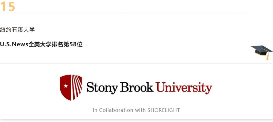 纽约石溪大学是纽约州立大学系统的重要成员,创立于 1957 年。学校科研实力雄厚,在 U.S.News 美国最佳大学排名第58,世界大学学术排名中也能跻身百强。优势学科众多,物理学、计算机科学、工程学等都处于全球领先地位。校园设施完备,且注重国际交流,为学生提供丰富的海外学习机会。学校本科课程学费平均为30000美金/年。