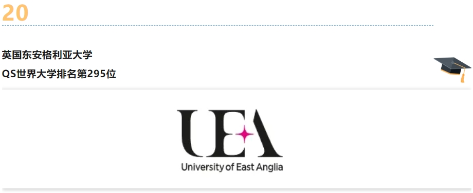 英国东安格利亚大学是世界一流大学,全球 1% 的精英大学。在 QS 世界大学排名中位列前 300,英国排名前 25。其优势学科众多,发展研究专业跻身世界前 20。学校教学质量卓越,获英国皇家教育部颁布的教学品质卓越金奖。校园设施一流,生活丰富多彩,校内的社交和文化设施一应俱全,适合来自世界各地的求学者。学校本科课程学费平均为18000英镑/年。