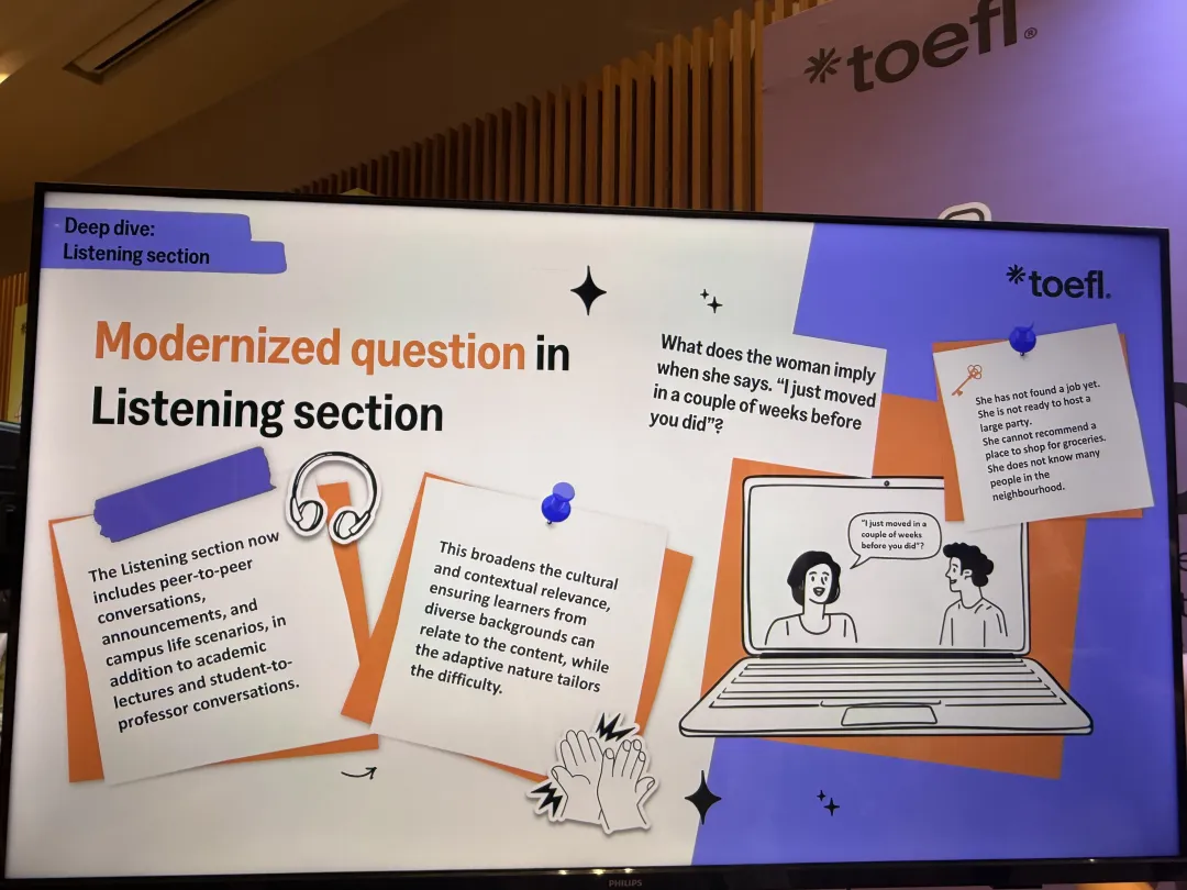 考试迎来变革,正源于这一代学习者所处的环境已远非昔日可比。如今的学生,早已突破传统学术英语的框架,活跃于一个高度全球化、数字化的舞台:沟通瞬间可达、形式丰富多元,更渗透着微妙的文化语境。新版托福考试正是基于这一现实设计——它不仅检验学生的英语知识,更关注他们能否在真实学术与社交场景中有效运用英语。