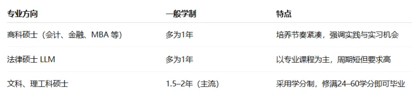 美国硕士项目类型多样,一般学制为1年至3.5年不等:大部分学生约两年完成学业,部分课程和表现优异者可在1-1.5年内毕业。